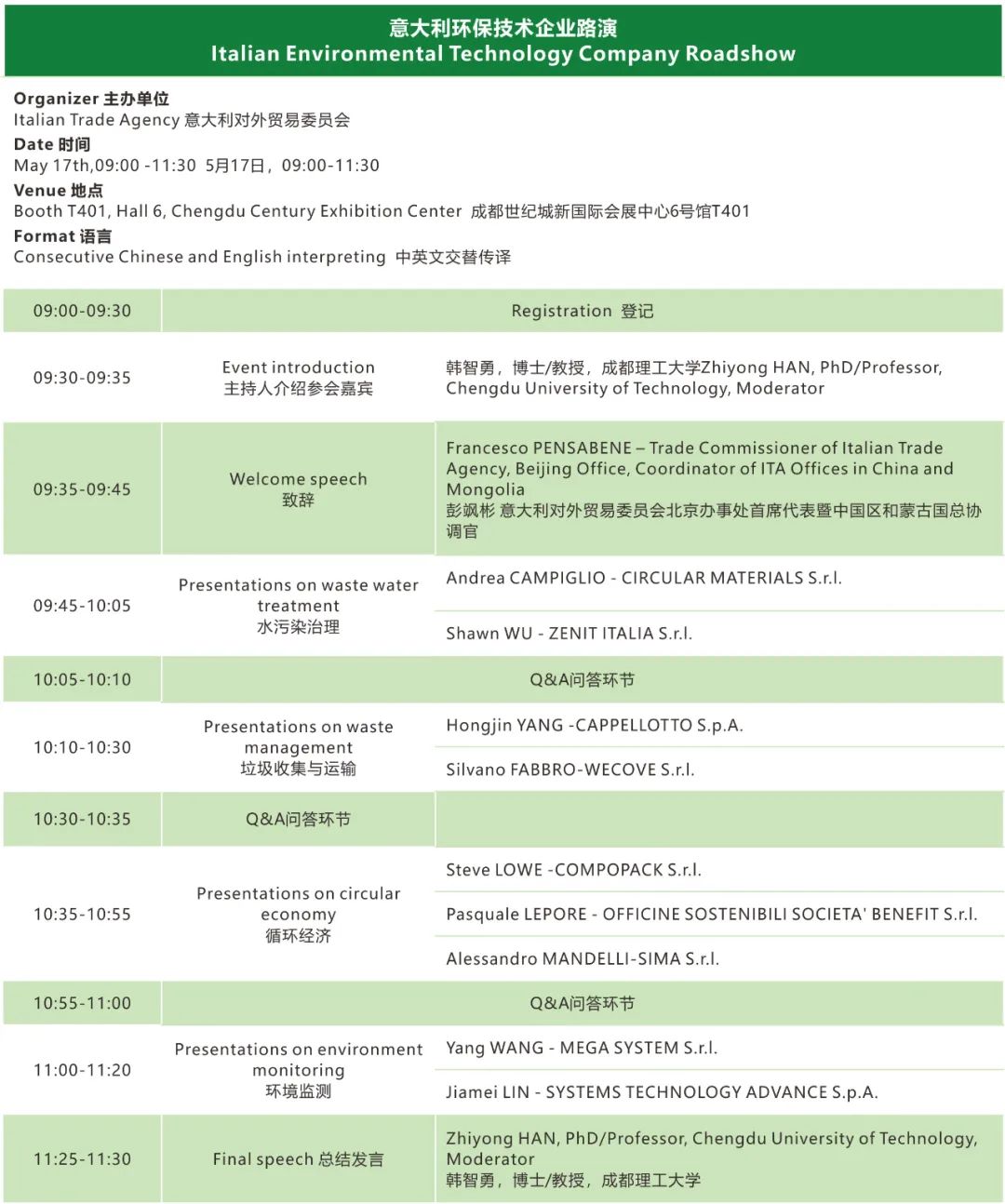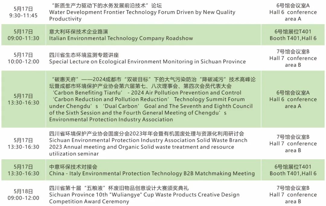 中国欧盟商会西南分会主席马晓利作“气候变化全球挑战,发挥中欧协同效应”主题演讲。他在演讲中分享了一项非常重要的欧盟政策:碳边界调整机制,并提出了中欧进一步合作实现碳中和目标的建议,他指出,气候变化是我们所有人都必须面对的最大挑战,只有采取一致、协调和紧急行动,我们才能取得胜利。中国和欧洲都做出了正式承诺,并制定了严格的脱碳目标,营造了一个企业在全球挑战中蓬勃发展的环境,气候变化、环境保护和脱碳仍然是我们合作的基石。仅仅应用清洁能源技术无法确保有效的脱碳,在实现碳中和的道路上,新的经济模式、生活方式和激进的文化转变同样重要。展会同期还举办了“双碳”助推绿色可持续发展论坛、第八届意大利可持续发展日暨蓉欧产业对话、新质生产力驱动下的水务发展前沿技术论坛、四川省生态环境监测专题讲座、意大利环保技术企业路演、“碳惠天府”——2024成都市“双碳目标”下的大气污染防治“降碳减污”技术高峰论坛、垃圾分类处理及资源化利用研讨会、中意环保技术对接会、四川省第十届废旧物品创意设计大赛颁奖典礼等9场论坛和活动。