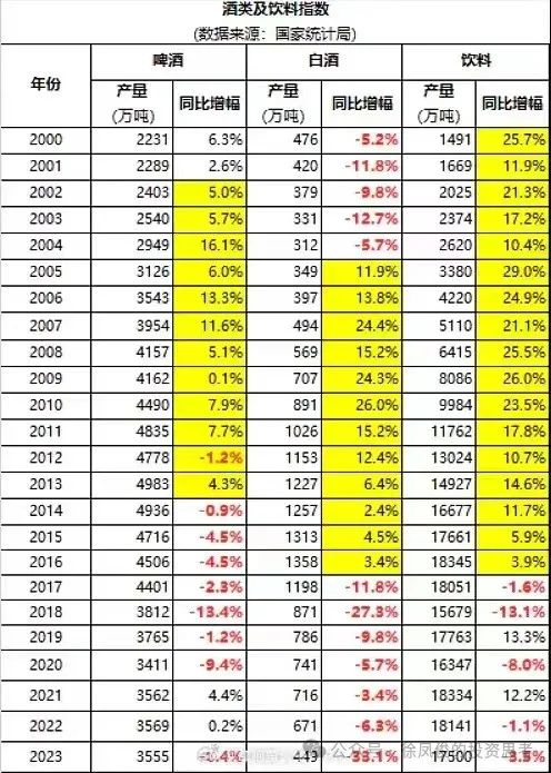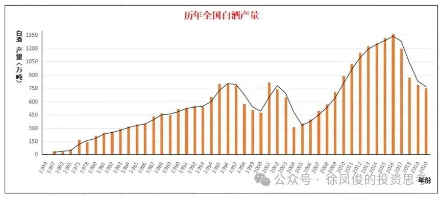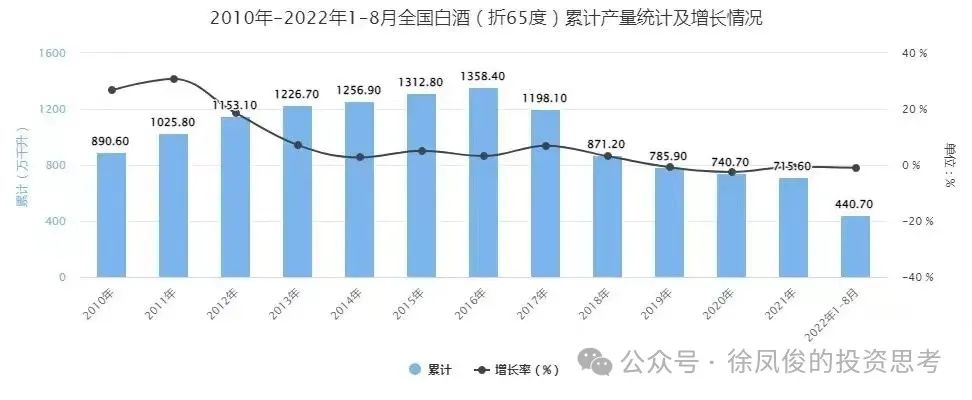 我们看到白酒行业的产量是萎缩的,实际上白酒行业产销量已经连续多年下滑。