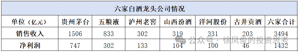 其中六家龙头公司总营收3494亿元,占白酒行业达到46%,六家龙头净利润总额1432亿元,占白酒行业达到62%。