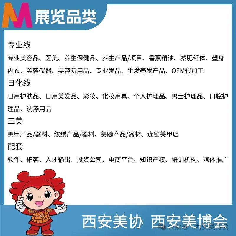 西安美博会是由西安美容美发化妆品业协会主办的全国性的化妆品展览会。历经二十余年的深厚积累,协会已扎根于陕西美业,致力于组织行业内的技能竞赛、评比大赛以及从业人员技能鉴定等工作,为行业奠定了坚实的基础。自2008年起,西安美协每年精心策划并举办每年两届美博会,这一盛事早已成为业界人士广泛参与、翘首以待的常规活动。
