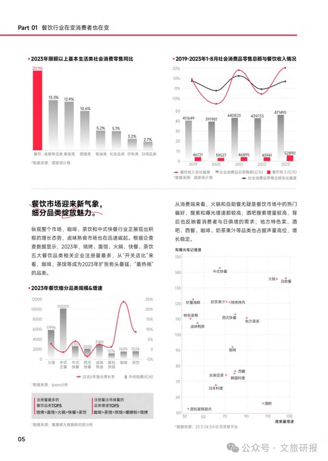 中国自古民以食为天,而在今天这个快节奏且充满挑战的时代,餐饮行业正在发生前所未有的变化。一方面,消费者通过餐饮追求更高阶的情绪价值和文化价值,随之更多的旅行、探店、社交、休闲悦己的场景逐步提升;另一方面,在社会整体消费日趋理性的后疫情时代,作为可以花最少的钱获得最大快乐的品类,居民在“吃”、“喝”的消费上逆势增长。在这两种趋势的推动下,餐饮也越来越多的通过种草,成为消费者多元化目的消费的品类。而小红书以其真实、利他、生动、丰富的餐饮内容,当之无愧成为餐饮行业种草主阵地。小红书此餐饮白皮书不仅旨在帮助餐饮品牌了解从小红书视角看到的行业新趋势,也希望助力各品牌更好把握消费者的决策动因,从而达到让好生意更可持续生长出来的目的。