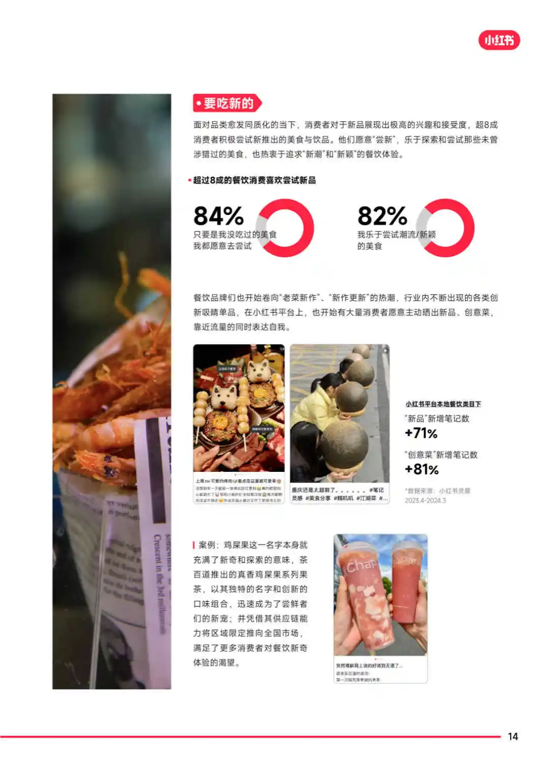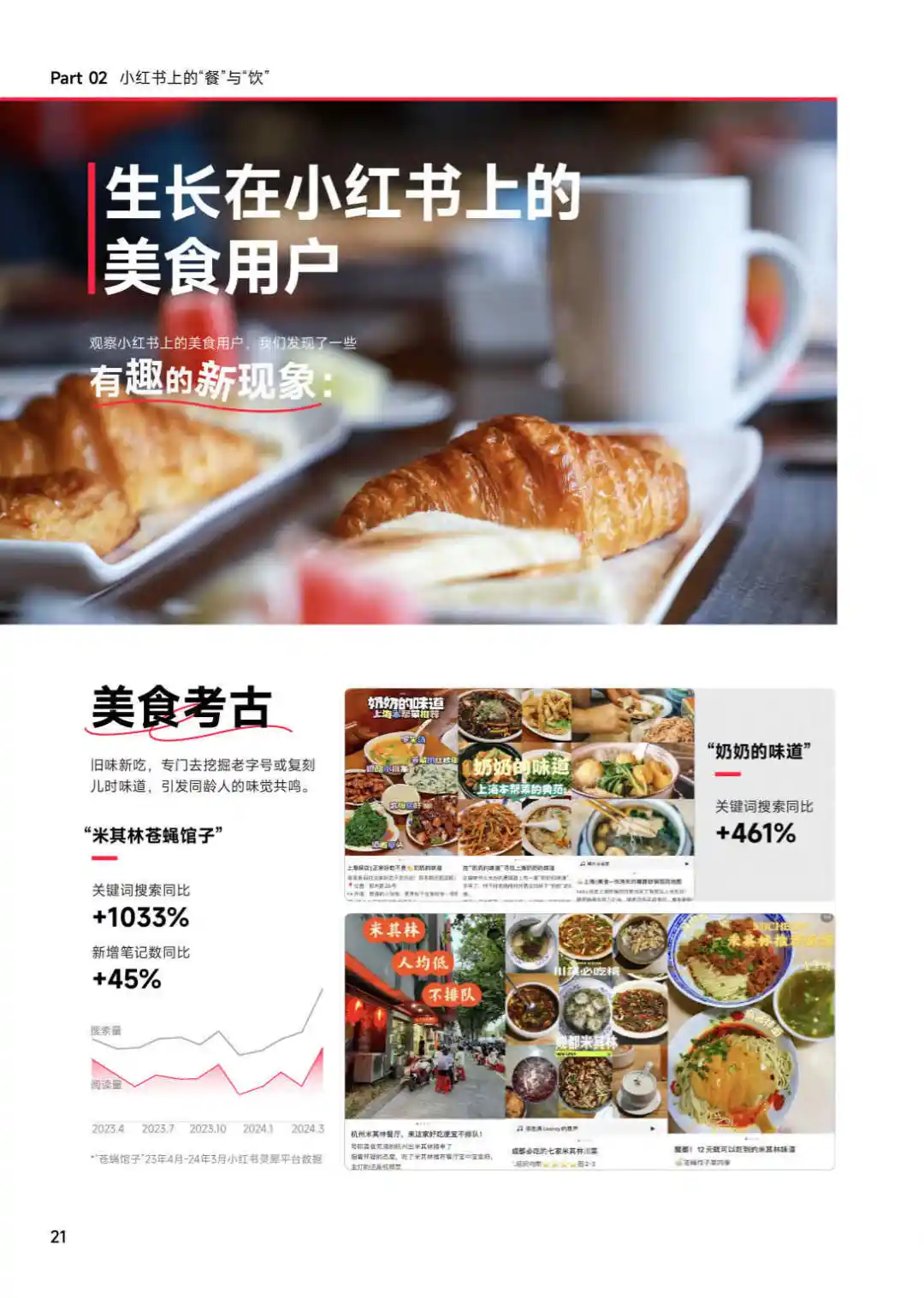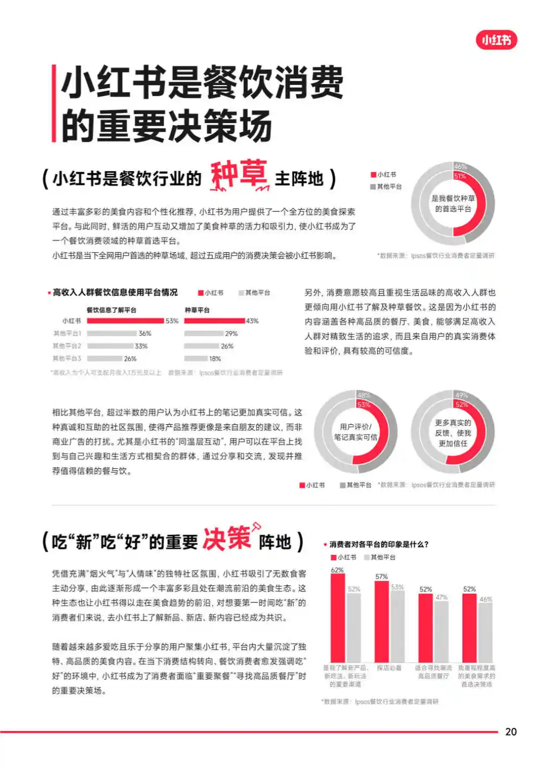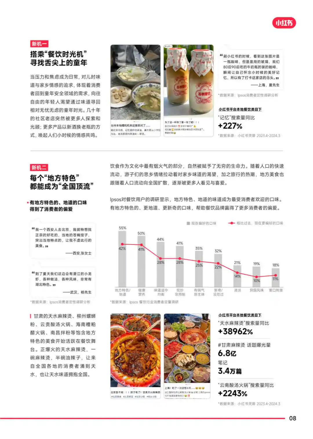 摘要:报告显示,消费者对餐饮的需求正从单一的口味体验转变为追求更高层次的情绪价值和文化价值。餐饮不仅是生活的小确幸,更成为社交、休闲和探索的重要场景。小红书凭借其真实、利他、生动、丰富的内容,成为餐饮消费决策的重要影响力量。