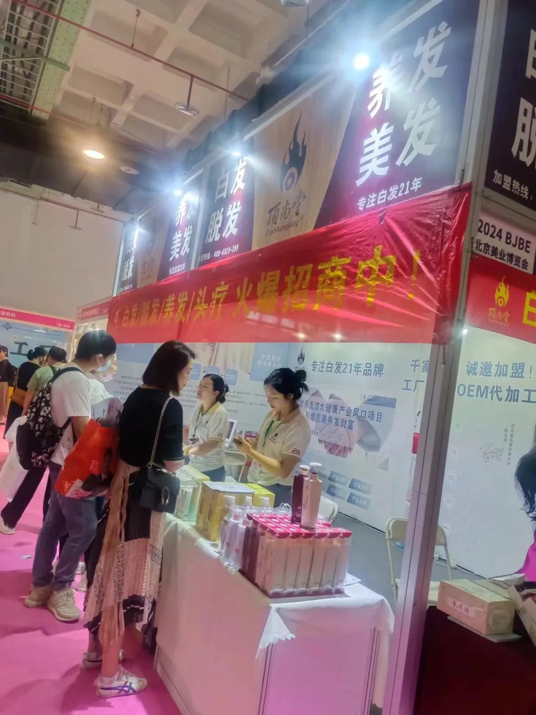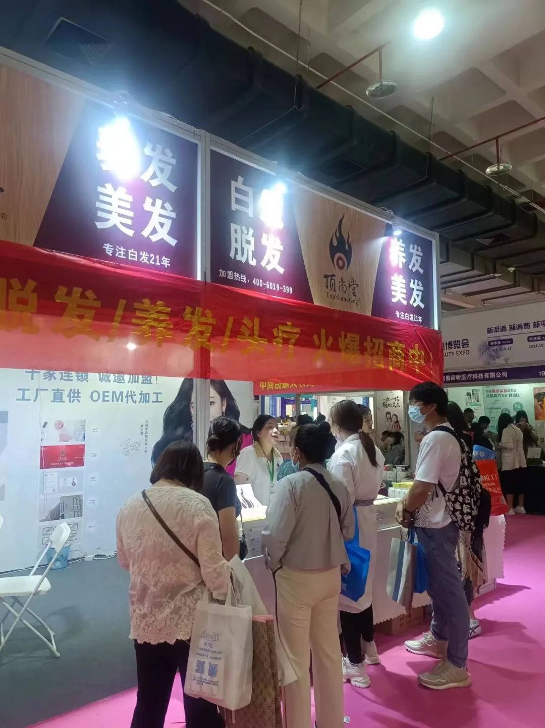 快来北京美博会,加入顶尚堂养发馆的热闹现场,一同感受我们的品牌魅力与优势。选择加入顶尚堂养发馆,你将拥有强大的品牌背书,成熟的运营模式,专业的技术支持和持续的创新能力。我们将与你携手共进,一同在养发行业开拓广阔的天地,共享财富与成功的机遇,让我们一起在顶尚堂养发馆的引领下,开启璀璨的未来之旅!