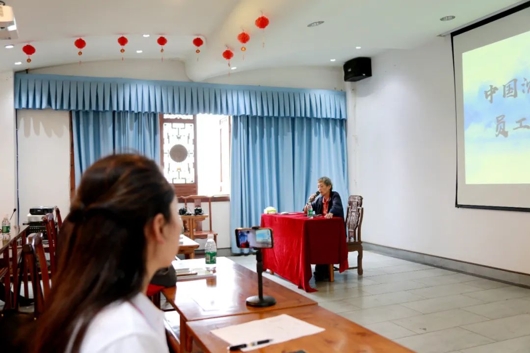 谢荔老师则是针对古董古玩领域,为沈酒员工们上了一堂生动的鉴赏课程。从中华陶器、瓷器的历史溯源,到科普“青铜器”到“红铜”、“黄铜”的发展历程,再到中国画与西洋画的对比讲解,讲解鞭辟入里。“古画创作中的透视技法,是区别中国传统绘画和西洋绘画的最大差别,中国画不使用透视......”谢荔老师讲得形象生动,沈酒员工听得津津有味。