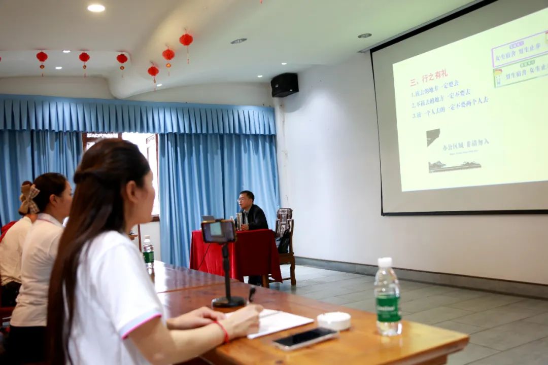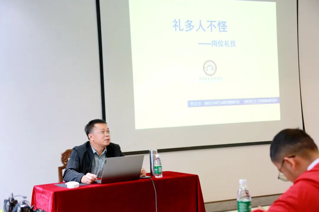 培训活动中,曾庆双教授为中国沈酒集团员工普及了“待人、沟通、做事、仪容仪表、站姿坐姿......”等多方面礼仪知识,并根据岗位划分,为集团员工分别进行了安保、导游、生产操作员、营销人员、经营管理人员等多种岗位礼仪培训。
