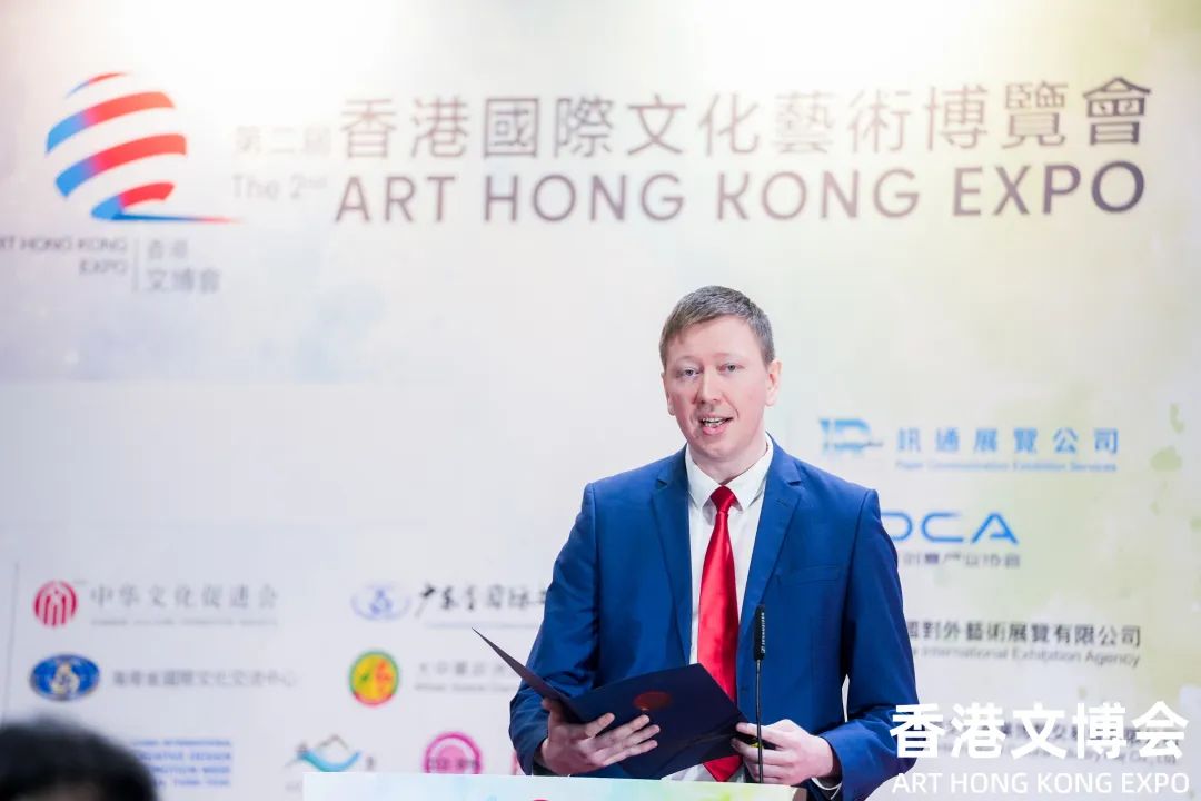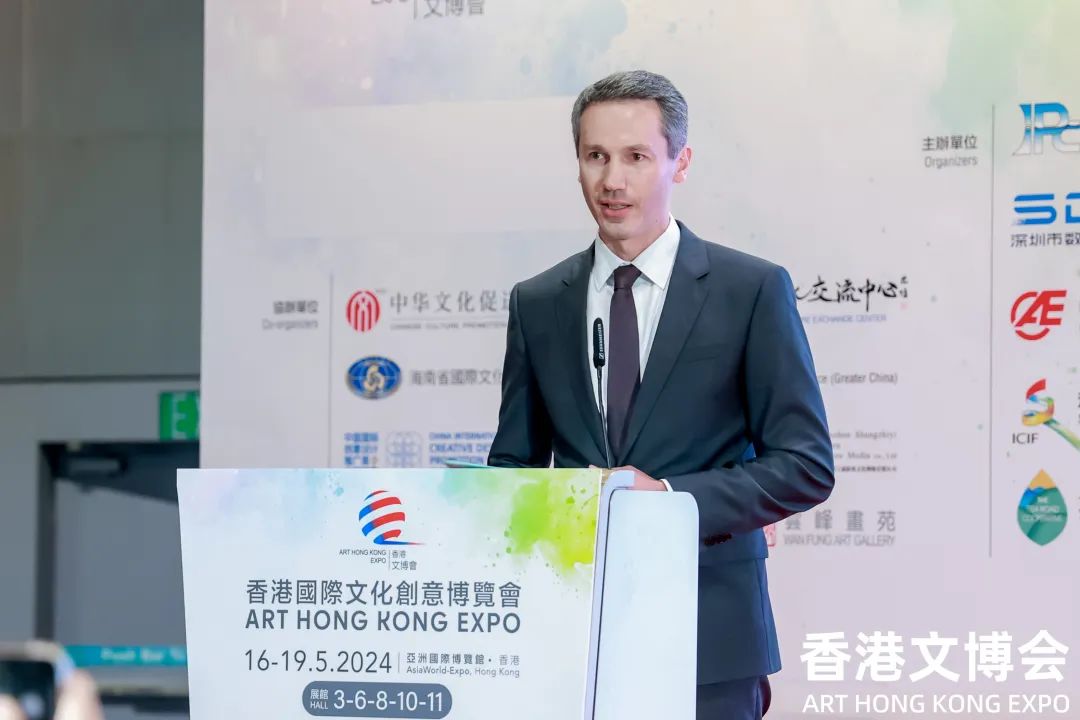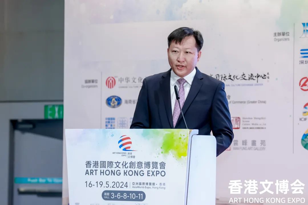 此次香港文博会开幕式在香港亚洲博览馆3号馆舞台举行,来自文化和旅游部产业发展司副司长傅翰霄先生、中国对外文化集团副总经理 郑秀全、深圳报业集团党组书记、社长 丁时照先生、深圳市数字创意产业协会执行会长、香港文博会组委会主席皮取兵先生、香港文博会组委会主席 梁天富先生以及俄罗斯等多国文化代表出席了本次开幕式并做推荐致辞!