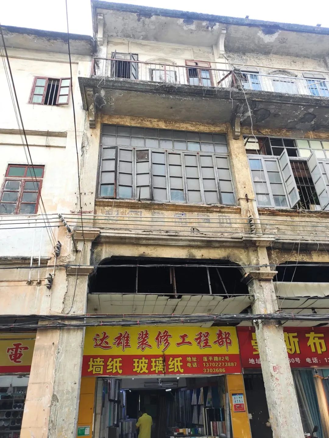 现存的莲平路骑楼多为砖木和砖混结构,风貌参差,其中不乏样式精美、浑厚大气的骑楼单体。曾经办报记者的匆匆步伐早已难觅踪迹,喧闹的叫卖声也随时光的积淀而归于沉寂,唯外墙窗边,打了霜的浮雕所守护的那份凋零的美,如同美人暮迟般地深情凝望着过往的曾经。