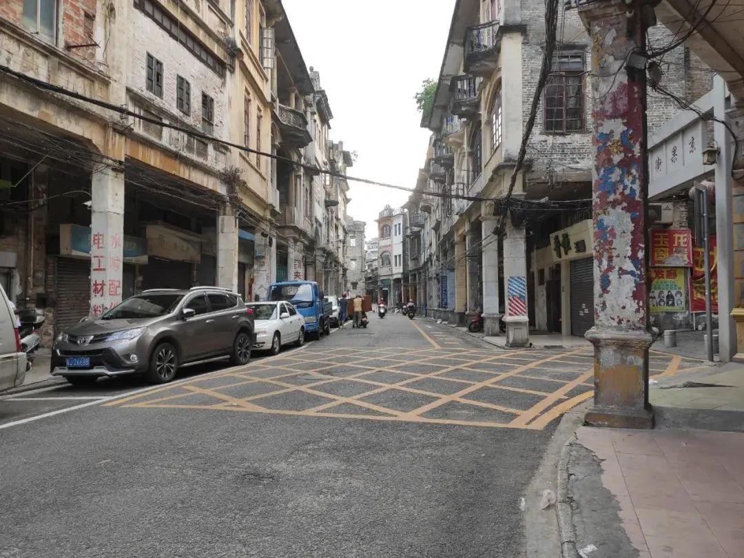 复界之后,人们在新市庙旁边重建新市,若要找寻古老新市的遗迹,江门墟下的莲平路、兴宁路、仓后路、新市路合围的区域,就是当年的新市。如今这片骑楼相接之地,正是当初商品批发荟萃之地。上世纪20年代,江门成立了市政促进委员会,在民间筹集资金,开始修筑长堤以及骑楼,在短短数年间,北起中山公园脚的莲平路,南到蓬江边的长堤,一列列规整新颖的骑楼拔地而起,使其从传统的市集转变为现代模式的城市。