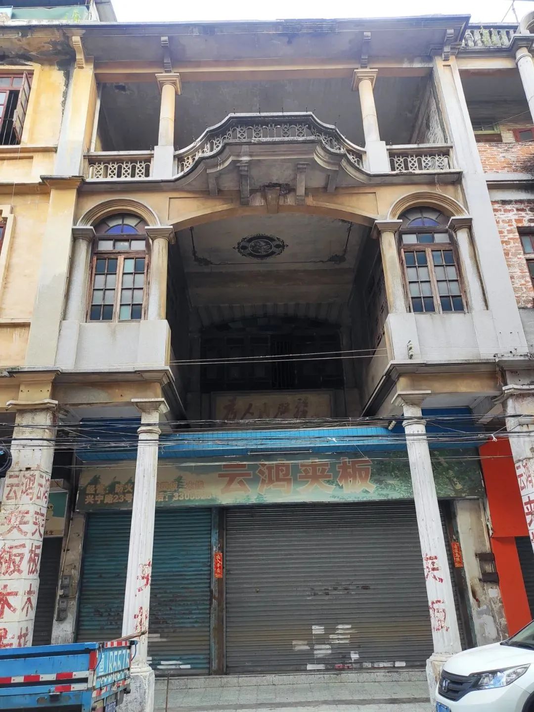 此栋楼后来又几度易手,几度重建,它曾长期作为江门镇公所,又在20世纪50年代成为了市法院的所在地,后来又成为了市粤剧团团址,自从90年代搬离了莲平路,这里就一直空置着。从昔日的人间烟火,商贾云集,到江门镇的政治中心,再到法院的正义审判,剧团的丝竹之乐,见证江门繁荣昌盛的这栋建筑,用默默无闻的斑驳追溯着江门这座城市的前尘往事。