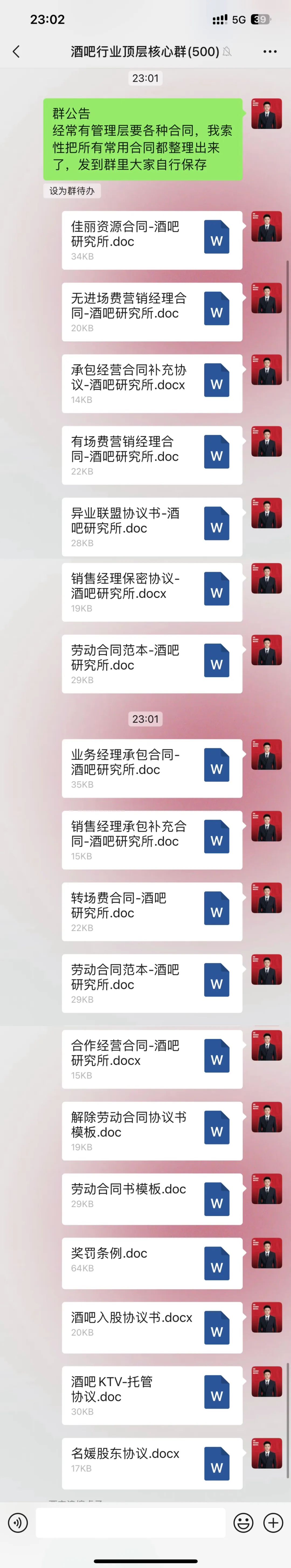 群内会定期分享夜店行业的管理资料、管理技巧、营销订台素材/图片等有用的信息。如有任何需要酒吧行业的表格、合同、报表也可以直接私信管理员。