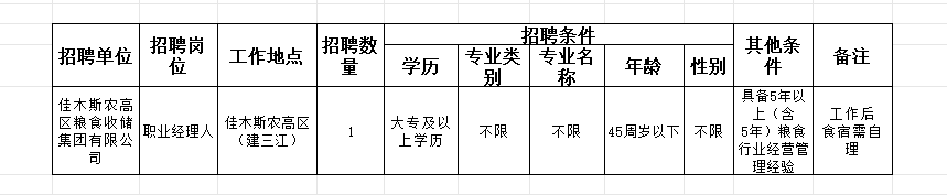 (二)岗位要求:具有大专及以上学历,具备5年或5年以上粮食行业管理经验;