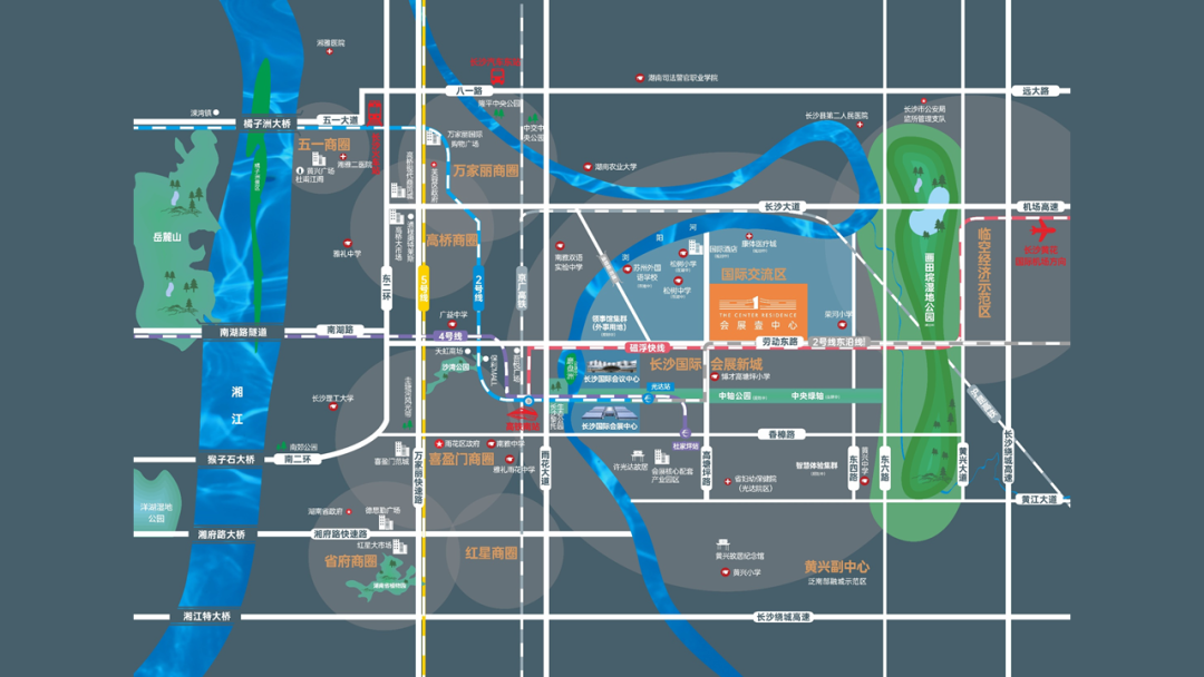 交通方面,周边有地铁2号线、4号线、长沙磁浮快线、12号线(规划)、14号线(规划),临近长沙高铁南站,无论是市内通勤还是出差,交通都非常便捷。