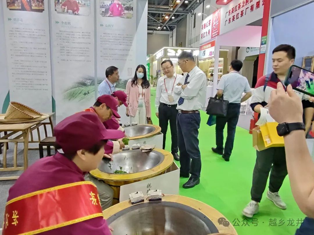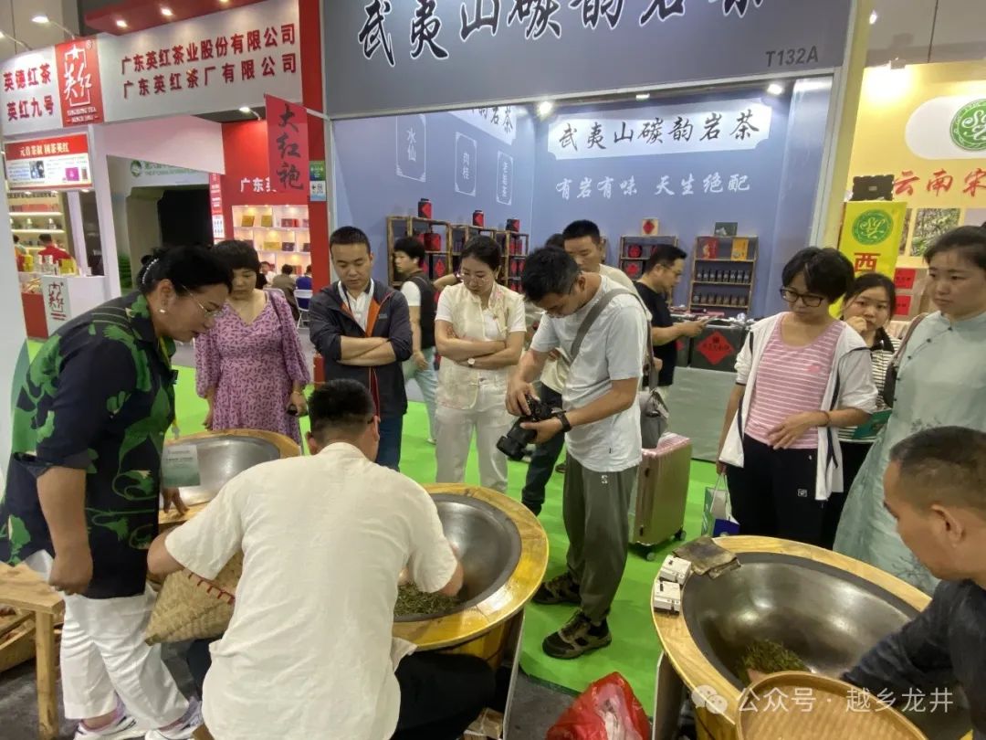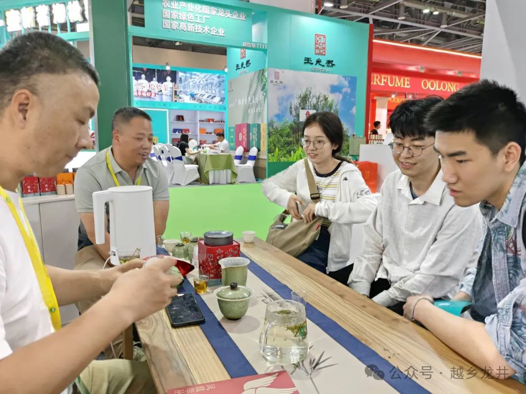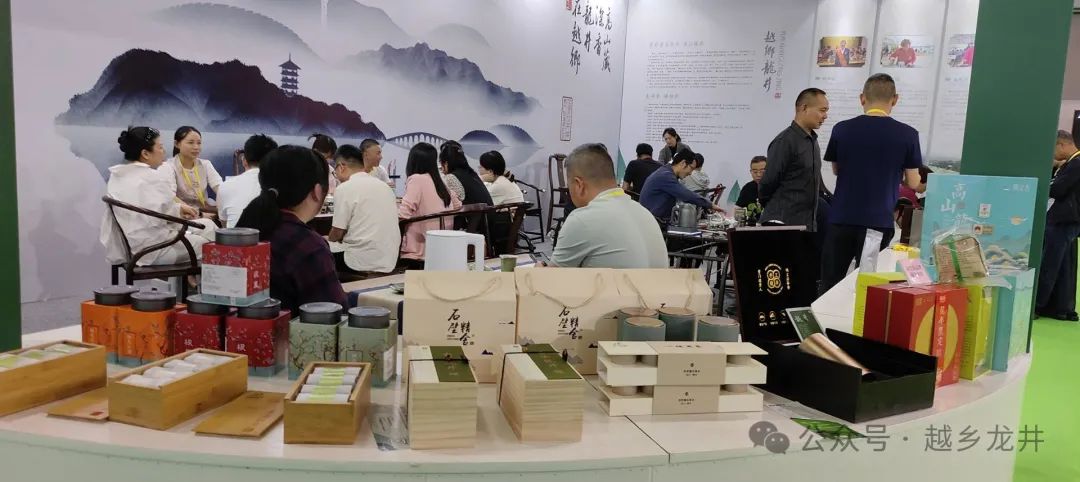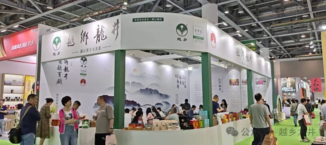 今天是第六届中国国际茶叶博览会开幕第一天,嵊州越乡龙井展馆人气还是挺旺的。