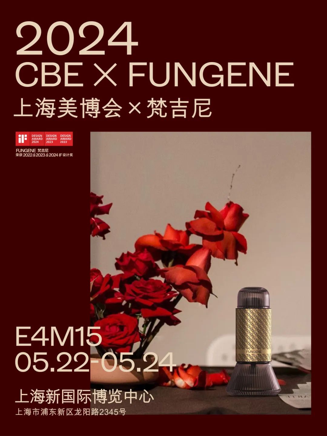 2024年5月22日-24日,第28届CBE中国美容博览会,即将在上海新国际博览中心(浦东)举行,而FUNGENE梵吉尼作为美博会的老朋友,将在今年携全新的香氛生活美学产品,惊艳亮相!