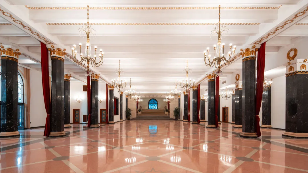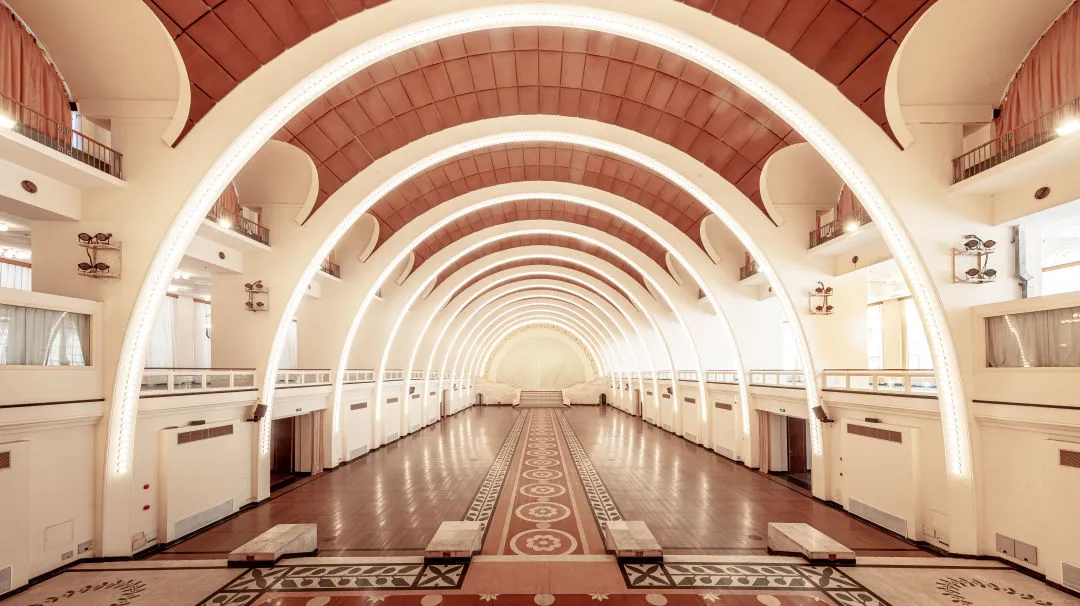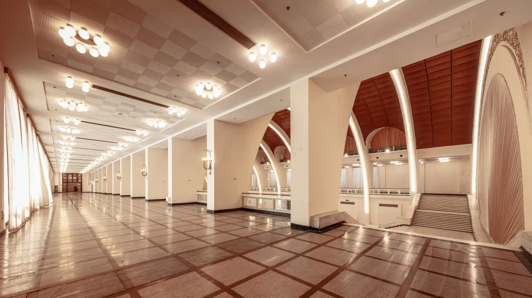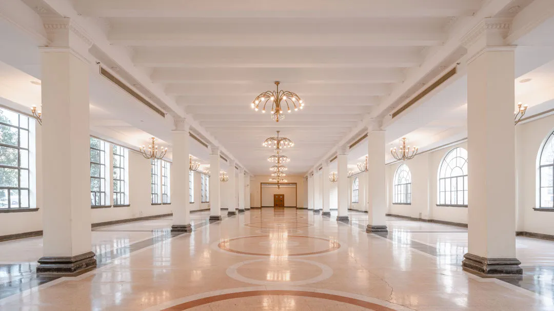 上海展览中心占地9.3万平方米,拥有2万平方米室内展览区。南部展览区包含雄伟典雅风格的序馆、中央大厅、东一馆和西一馆。北部友谊会堂整体空间开阔肃穆,是举办会议和活动的理想场所。