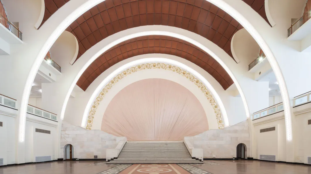 上海展览中心为典型的俄罗斯古典主义风格,布局规整、建筑华美。东一馆与西一馆呈中轴对称,与序馆中央大厅共同构成辉煌雄伟的整体。