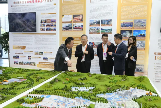 在“践行资源报国”展区,集中展示了集团公司始终坚持和践行“资源报国”使命担当,立足“1+4”发展战略,充分发挥资源开发领域技术、人才和资源比较优势,服从服务于国家战略资源发展大局的担当和风采。中国有色集团紧盯重点产业链供应链“卡脖子”难题,集中力量开展原创技术攻关,以铜及铜合金材料、稀有金属材料、贵金属材料、新能源材料、人工晶体等领域为突破点,坚决做强做优做大材料业务;紧紧围绕“一带一路”倡议,深耕国际工程承包和相关贸易服务,在“走出去”实践中取得了丰硕成果,成长为我国最大粗铜进口商,为缓解国内铜冶炼原料紧张、保障战略铜资源产业链稳定和供应链安全发挥了重要作用。