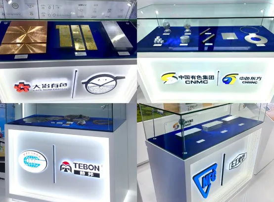 在产品展区,对集团所属企业拥有独立注册商标品牌的产品进行了实物展示,包括中色东方的7cell超导腔、钽铌产品、铍及铍合金产品、银产品、钛及钛合金、钒铝合金产品,中色桂林院的纳米硅粉、硅基负极材料、KTP电光开关、KTP倍频器件、水热法PPKTP器件、金刚石组合绳锯、超硬合金刀等产品,中色大冶的阴极铜板、金银锭产品,中色股份的锌锭、锌合金产品等一系列行业“拳头”产品,均在相应区域展柜集中展示。