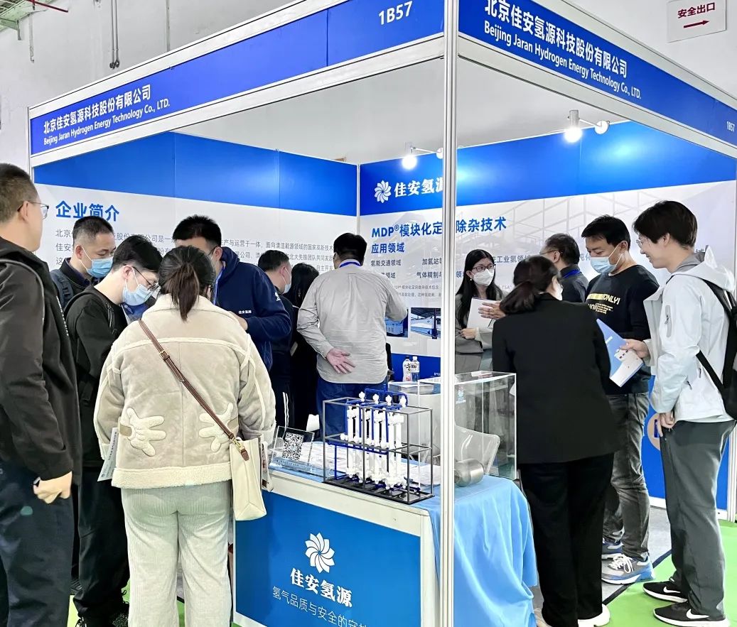 展会上,佳安氢源展示了MDP模块化定向除杂技术近期的多个项目案例和“氢可立”模型,并重点推出MDP针对紧凑布置需求开发的“小型集成化氢气提纯技术”,得到了客户的广泛关注和好评。