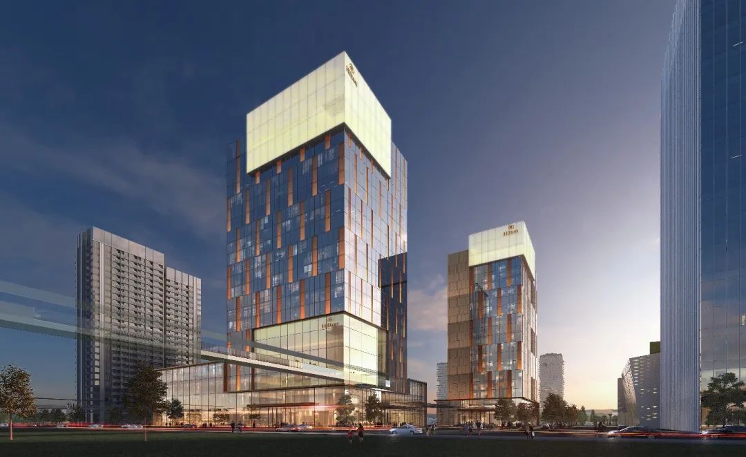 位于会展湾·中港(3-01地块),总建面约7万㎡。其中,五星希尔顿酒店规模约45000㎡,可提供324间客房数;四星希尔顿花园酒店规模约25000㎡,可提供407间。作为服务会展中心的首批入市酒店之一,将为全球高端参展人群提供最便捷的居住、餐饮和会议商务配套。