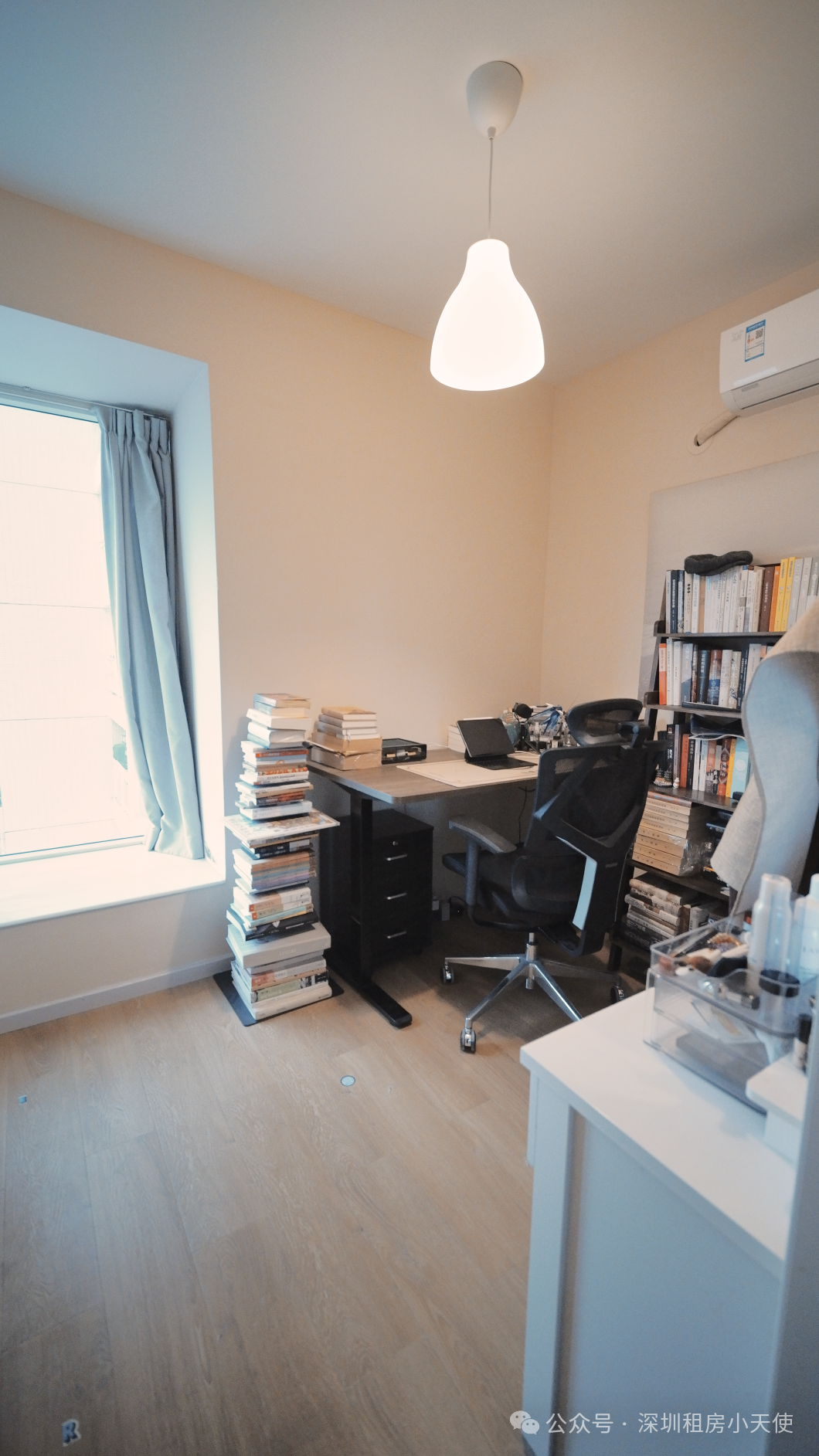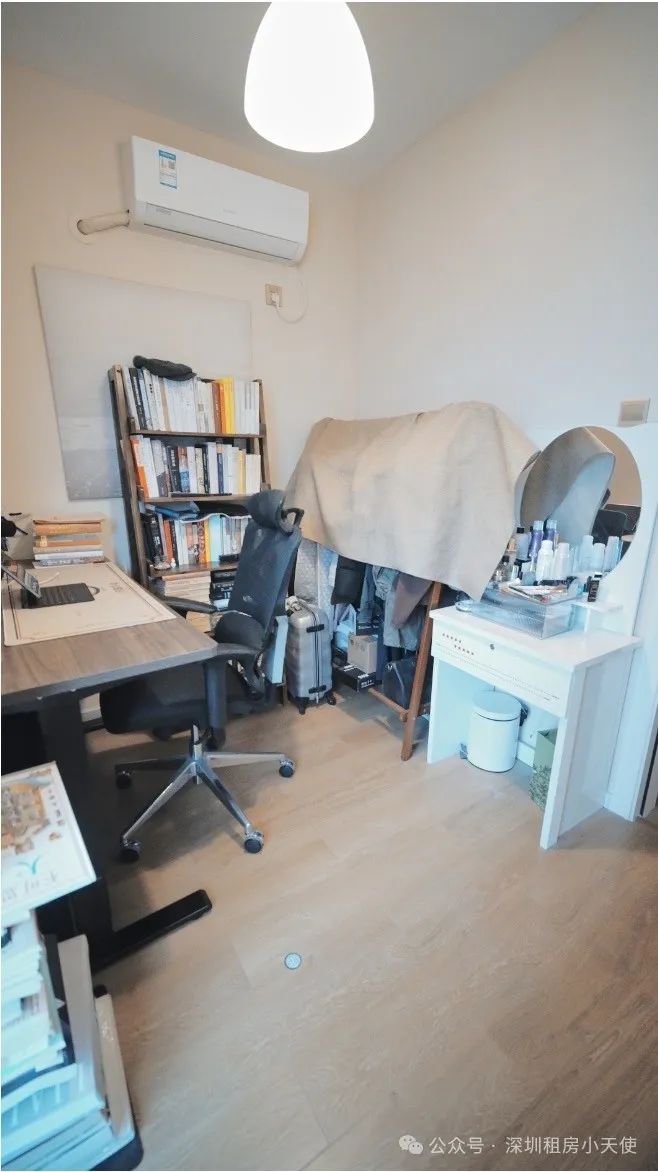 房间窗外视线无遮挡,窗外就是福田中心最美的景致;民水民电,每间屋子配备空调;有燃气可做饭;有阳台及升降晾衣杆。卫生间干湿分离,品牌洁具;次卧现被我改成了书房,但也能配备一张床。家具家电方面除了烤箱,书桌书柜办公椅之外,都是所见即所得。