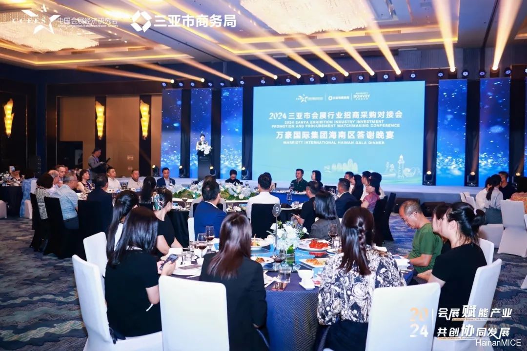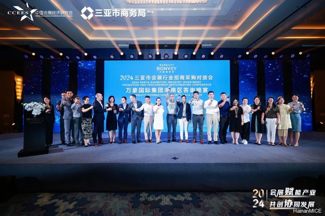 万豪国际集团海南区答谢晚宴设于三亚山海天JW万豪酒店。中国会展经济研究会副会长、海南省会奖旅游与展览行业协会会长陈方旭、中国会展经济研究会乡村振兴工作委员会主任、智海王潮传播集团总裁谌立雄,中国会展经济研究会副秘书长、会展BEN主理人许锋,采购中国经理人社群会长云耸玉,海南省会奖旅游与展览行业副会长兼秘书长杨冬文,万豪国际集团中国海南区销售与分销区域总监钟莹,本次活动嘉宾及万豪国际集团中国海南区各酒店总经理、代表参加晚宴。
