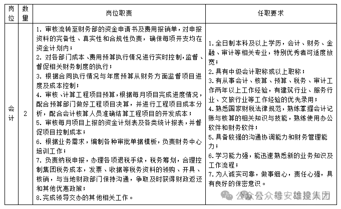 雄安雄州建设投资集团有限公司招聘岗位职责及任职资格条件