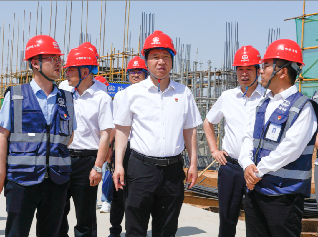 近日,中铁七局五公司党委书记、执行董事王永波到中原国际会展中心项目检查调研。