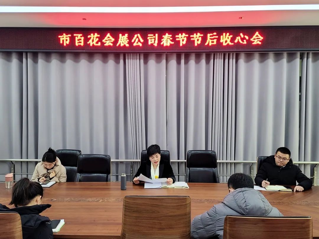 为进一步统一思想认识,凝心聚力为2023年工作开展开好头、起好步。1月29日,市百花会展公司召开春节节后收心会,安排部署重点工作,夯实目标工作任务,公司全体干部职工参加了会议。