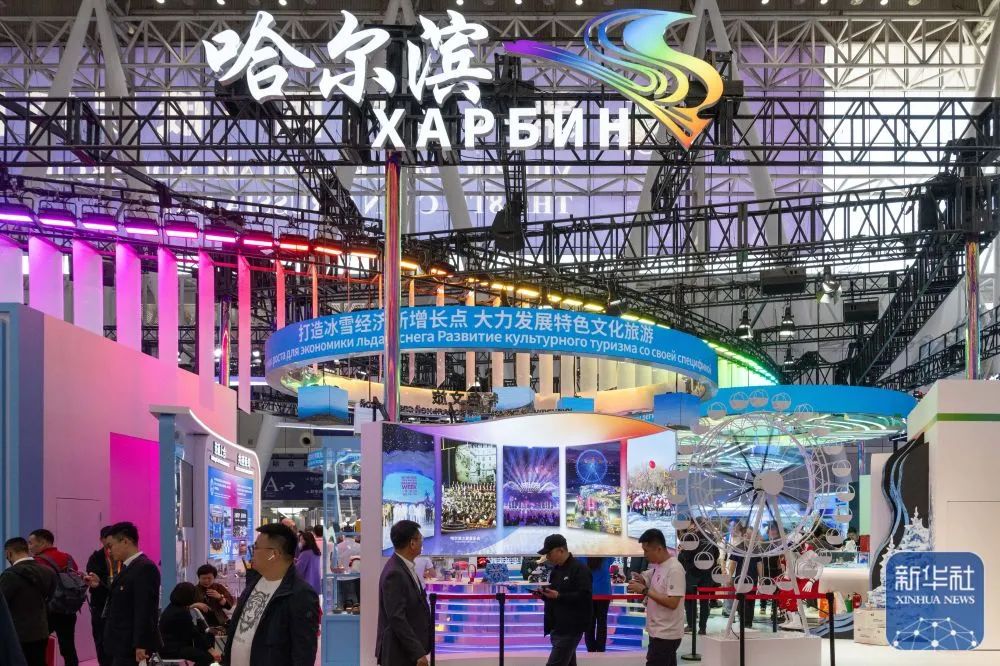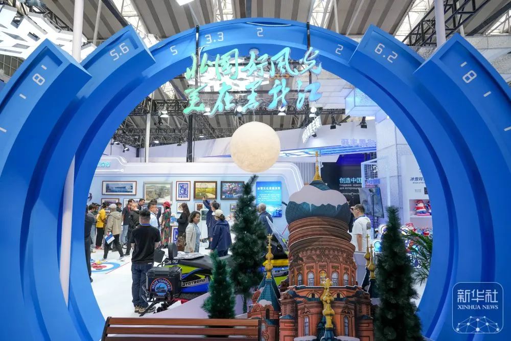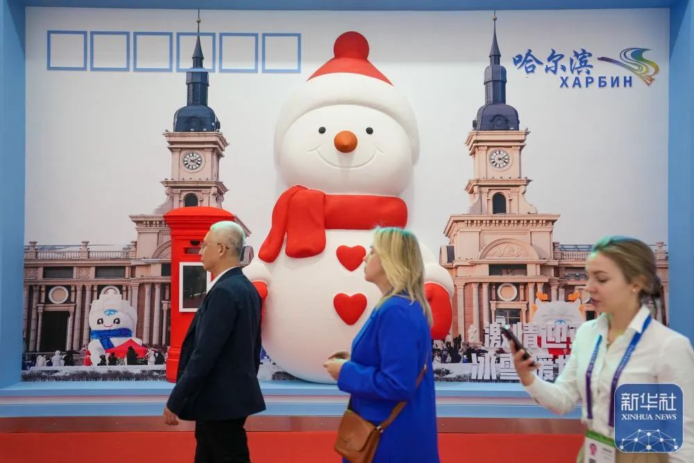 5月18日,在第八届中俄博览会现场,参会者查看2025年第九届亚冬会纪念品。