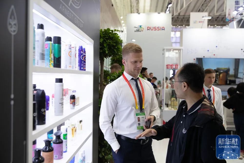 5月18日,参会者在第八届中俄博览会现场互动交流。
