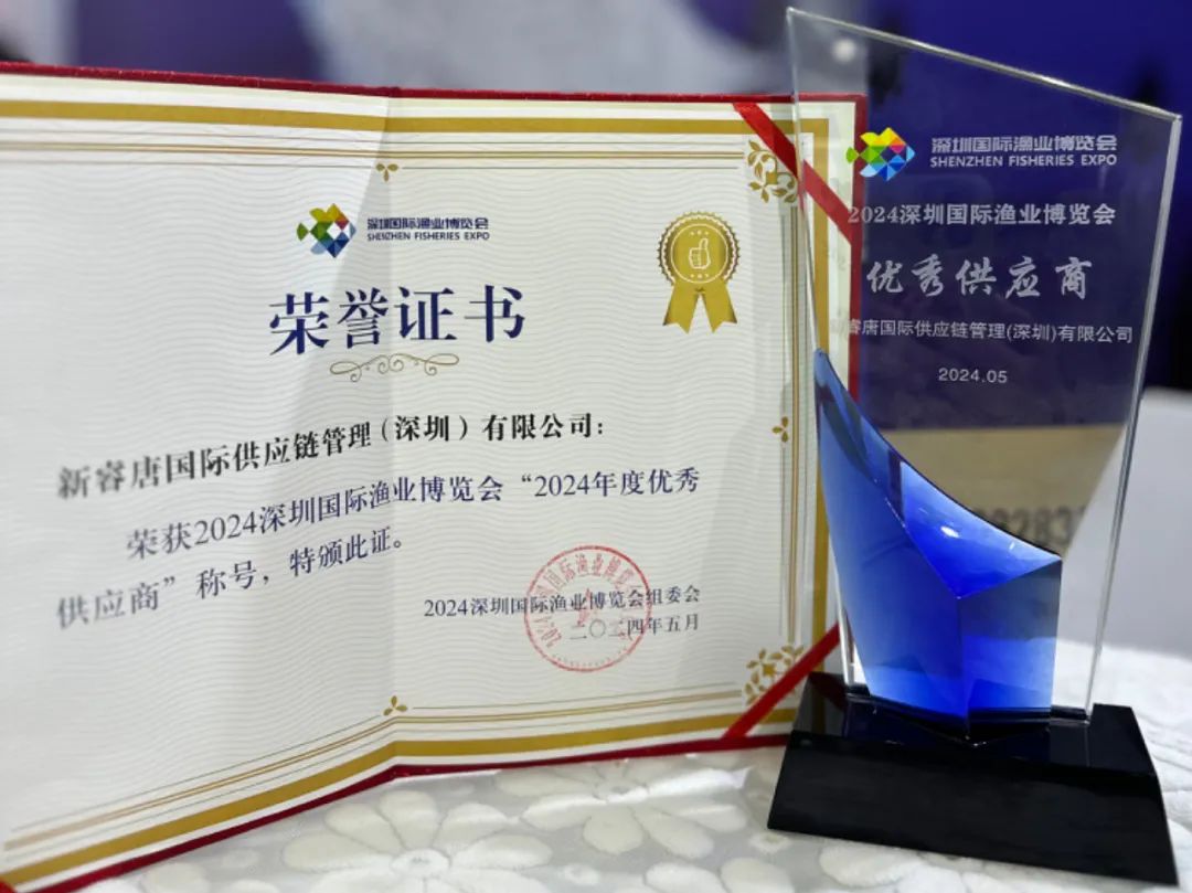 新睿唐在通过各界朋友的支持下最终获得头筹,我们新睿唐国际供应链管理(深圳)有限公司荣获了2024深圳国际渔业博览会颁发的优秀供应商奖,500+全球供应商参与此次评选活动,新睿唐荣获网络票选的第一名。这个奖项激励了我们,相信在不久的将来新睿唐将会为大家提供更高优质的产品,让大家买的放心,吃的安心。