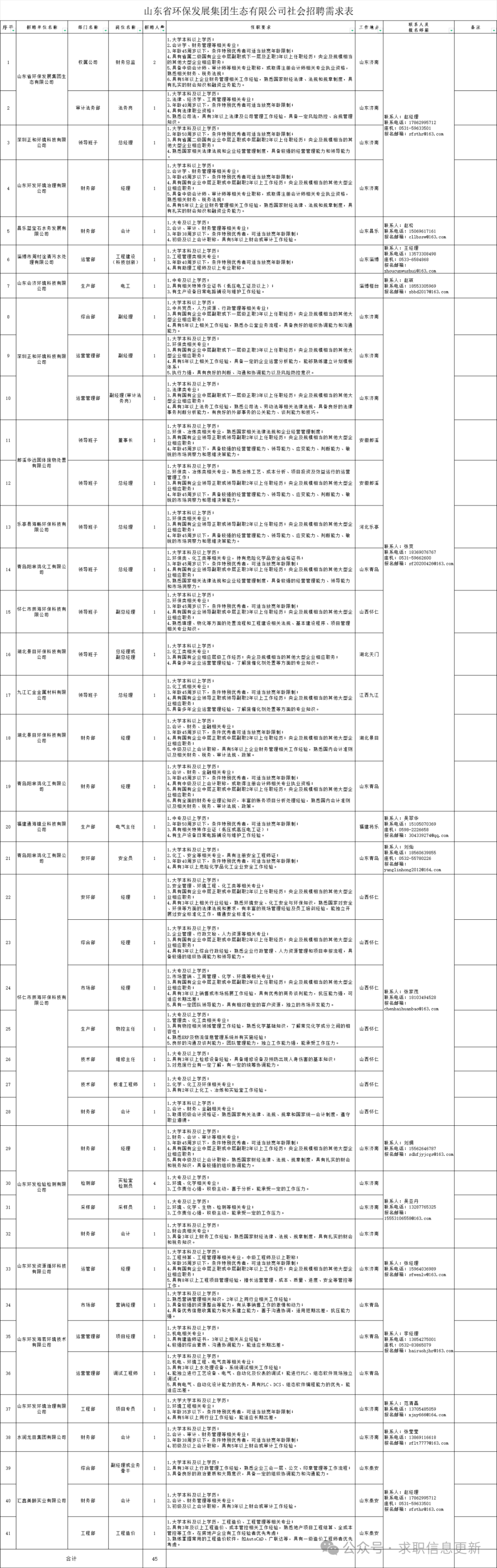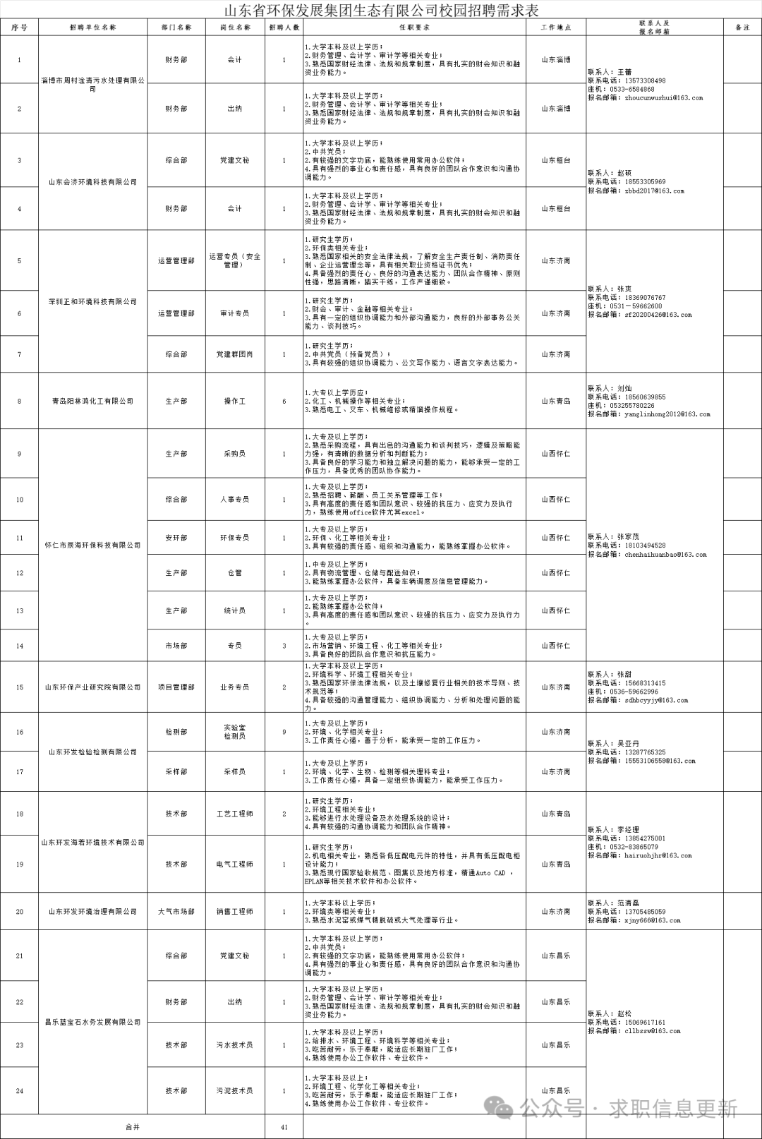 招聘岗位及具体任职要求详见《山东省环保发展集团生态有限公司社招、校招招聘需求表》(附件1、2)。