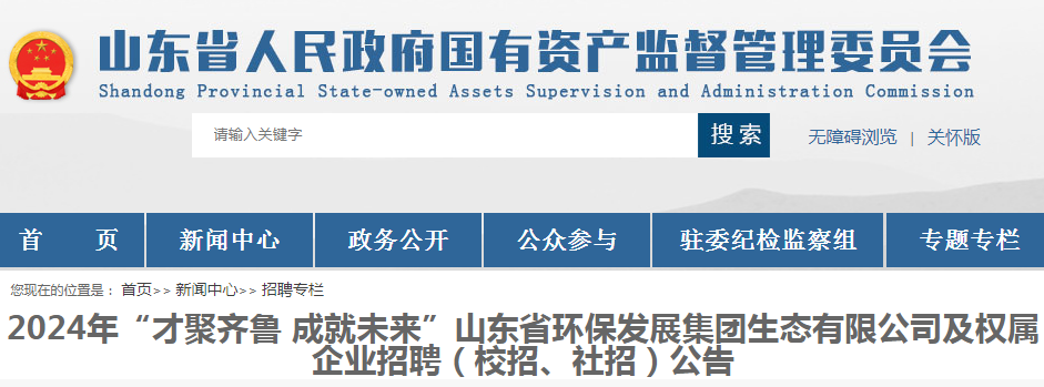 山东省环保发展集团生态有限公司(以下简称“生态集团”),系省环保集团一级权属企业,业务范围涵盖固危废处置、大气和土壤修复、污水处理、城市供水、矿山修复、检验检测、废钢加工及汽车拆解等,现有权属企业60余户,资产总额90.46亿元。为适应生态集团发展需要,现面向社会、优秀高校毕业生,开展公开招聘,有关情况公告如下: