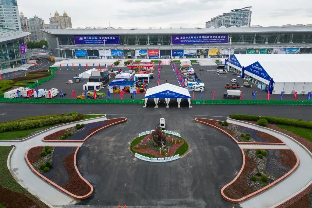 这是5月14日拍摄的第八届中俄博览会布展现场(无人机照片)。新华社记者 张涛 摄