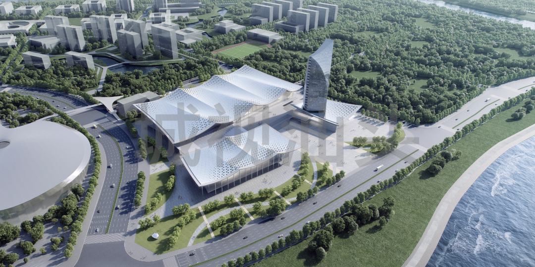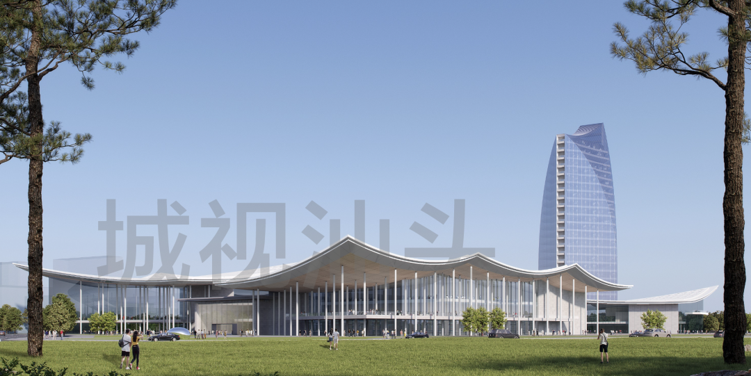 展会展览中心总建筑面积约 14 万平方米,规模为林百欣国际会展中心的 4 倍,造型以“潮起逐浪,扬帆起航”为设计理念,计划工期 18 个月,预计总投资 15 亿元,建成后将成为粤东地区规模最大的展会中心。