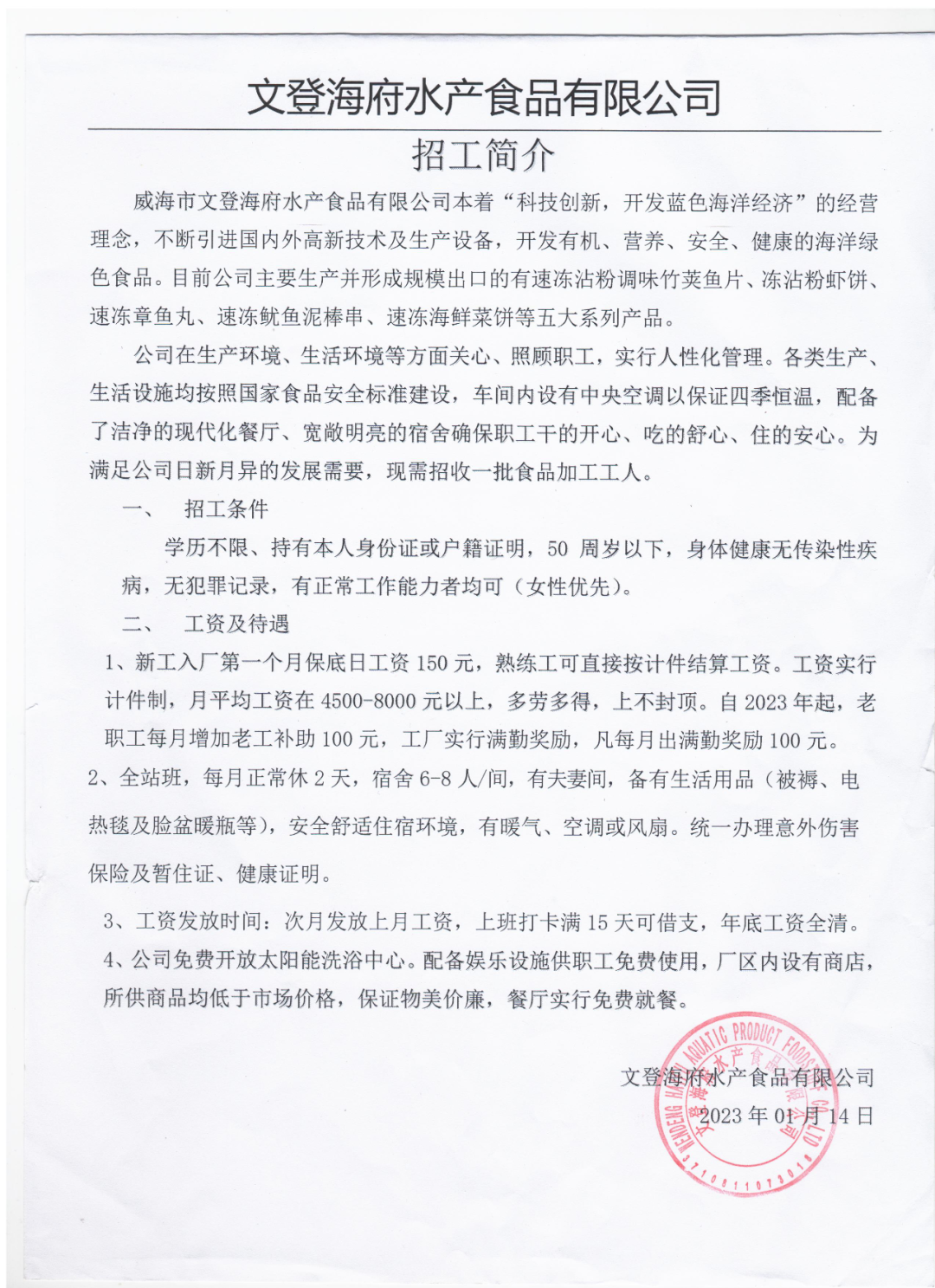 3.鱿鱼精细分割工,绩效工资+满勤奖4500到7500元
