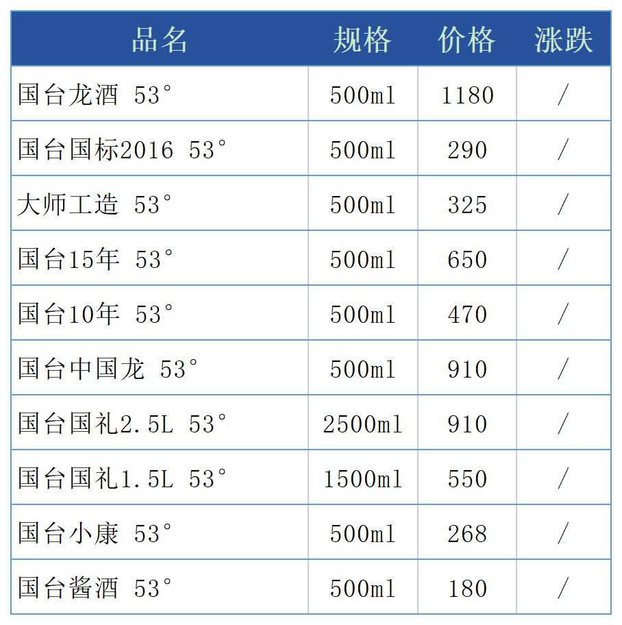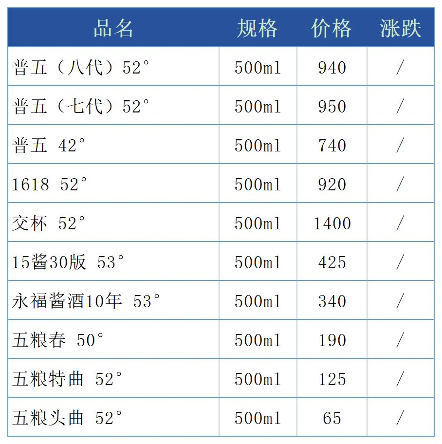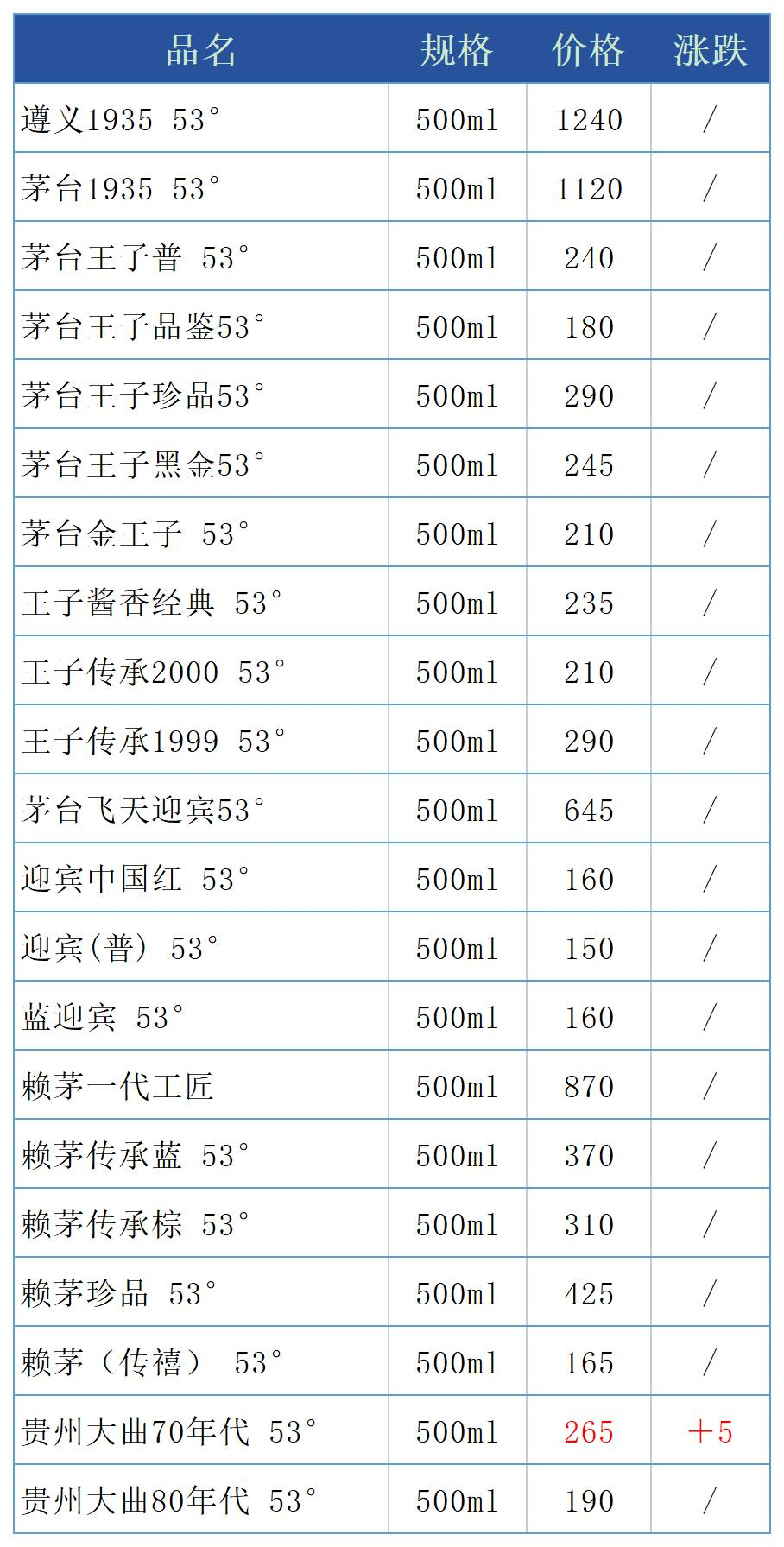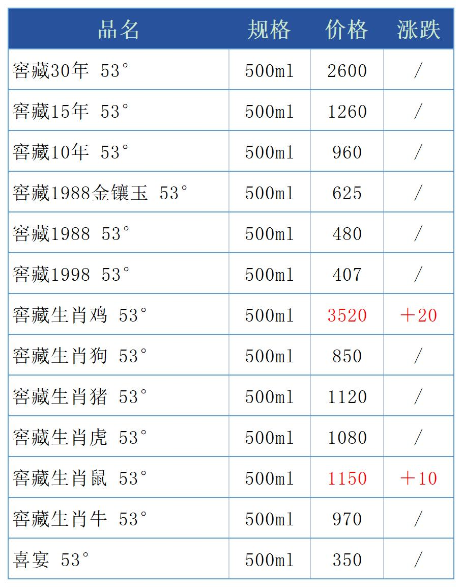 茅台小幅下跌,每日名酒报价2023年1月31日
