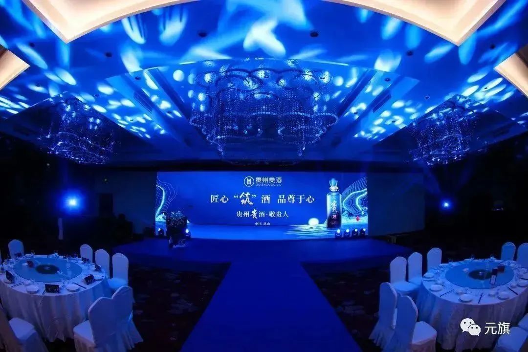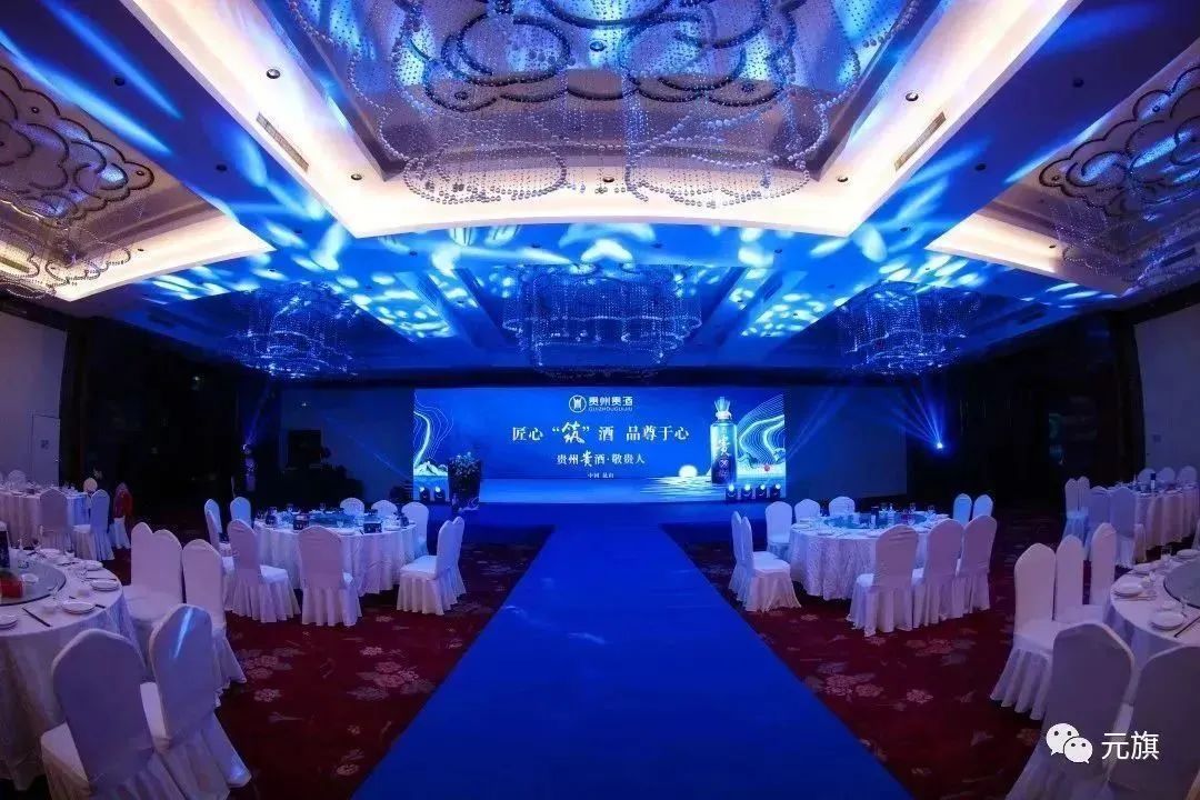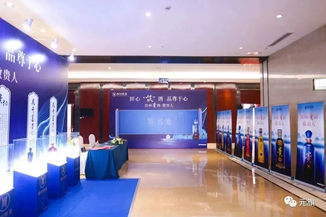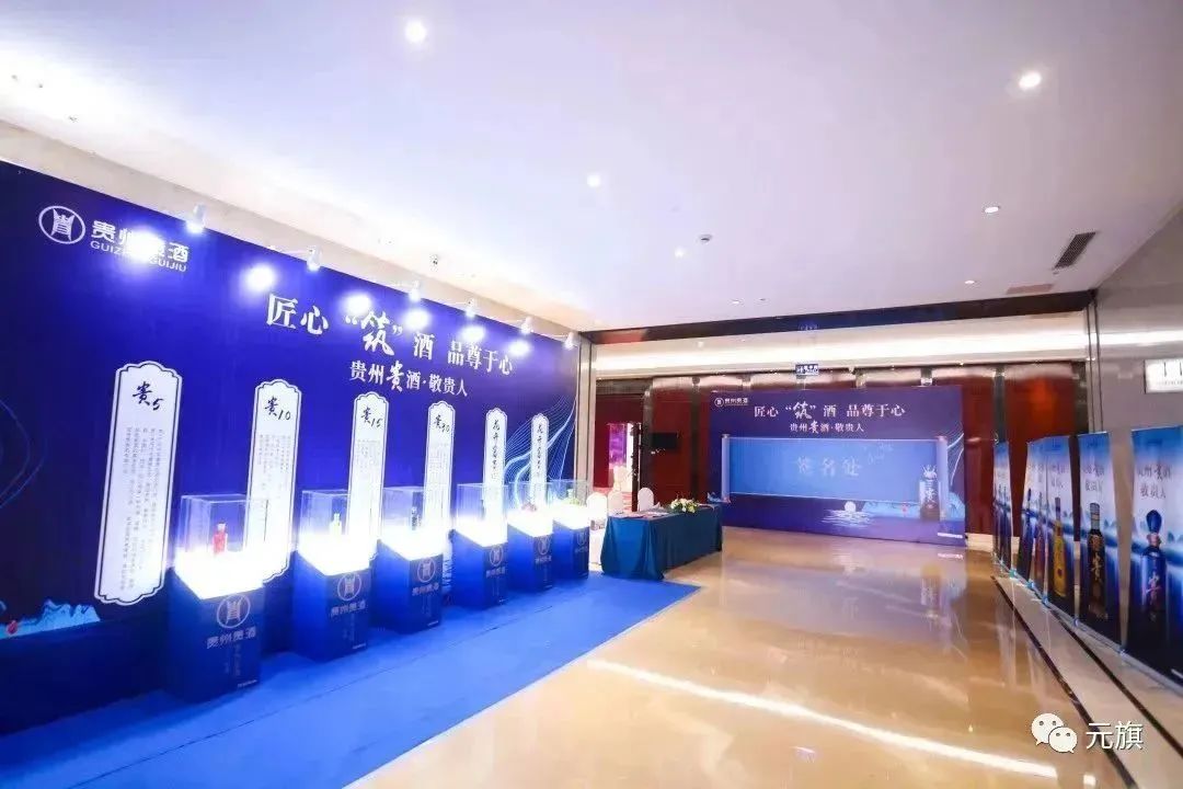 此次为贵酒集团打造的主题活动“匠心筑酒 品尊于心”,整体布置采用蓝色系,深沉典雅,不失大气。签到处长廊向来宾展示了贵酒集团的系列代表作品,既有实品现场展示,也有宣传海报展览。