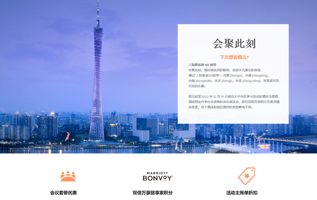 2022年底多家酒店集团纷纷推出会议双倍积分的促销活动。特别是会议组织者获得国际酒店集团的积分后,可以兑换该集团全球范围内旗下酒店品牌的住宿等相关产品,不仅范围广而且品牌多,具有一定的吸引力。