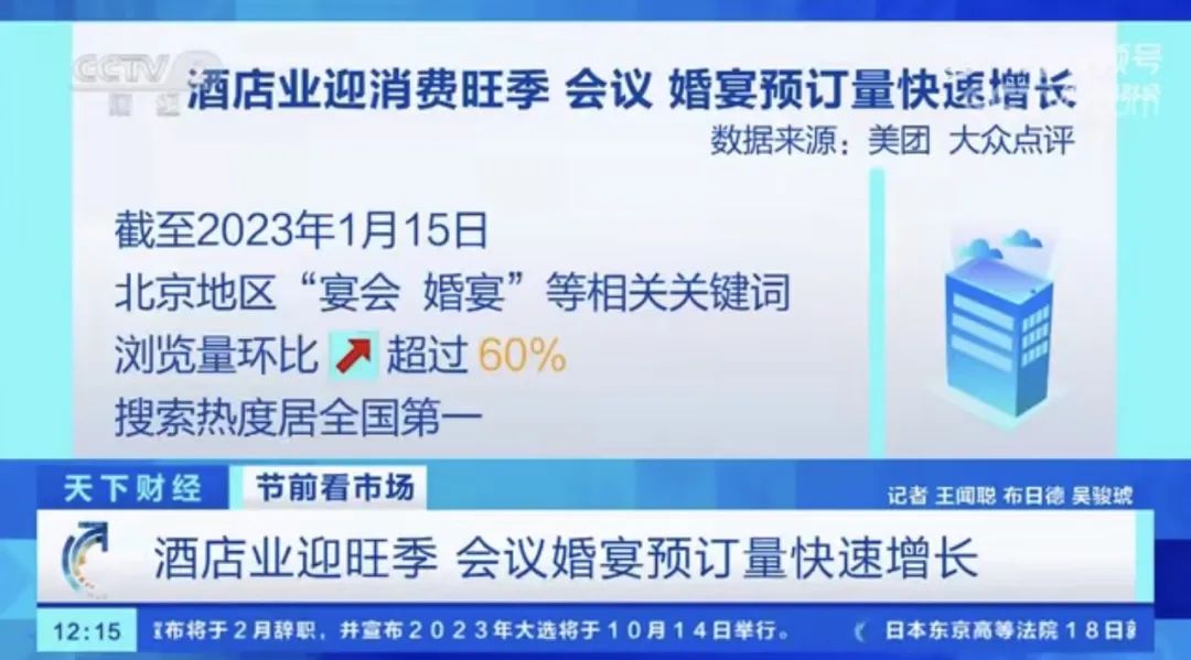 近日央视财经报道的数据显示,今年1月以来,宴会厅的搜索热度持续攀升。截至1月15日,北京地区“宴会、婚宴”等相关关键词的浏览量环比增长超过60%,搜索热度居全国第一。