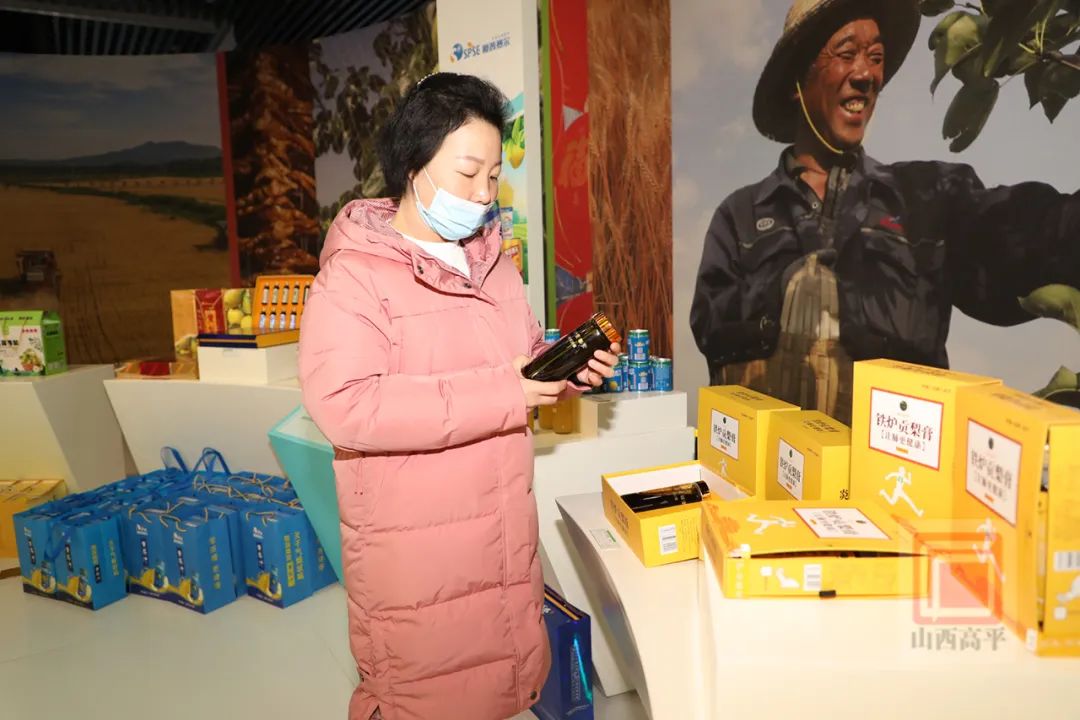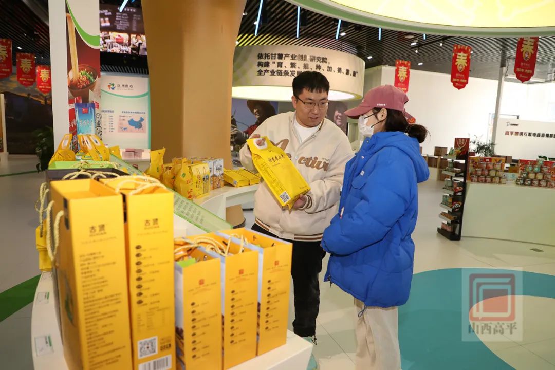 市民刘浩在七佛山看完花灯、民俗展演后,特意来到智创城购买特色年货。他说,“今天在逛完彩灯后,听说这里有最全的产品展销,专程和家人过来这边逛一逛,各式各样的特色产品让人目不暇接。我挑选了‘高平有礼’特色礼盒,里面有晋宝绿珍酸辣粉、红薯粉条、石碾小米、梨膏、黄芩茶、三个农夫果蔬脆等,作为礼品走亲访友很不错。”