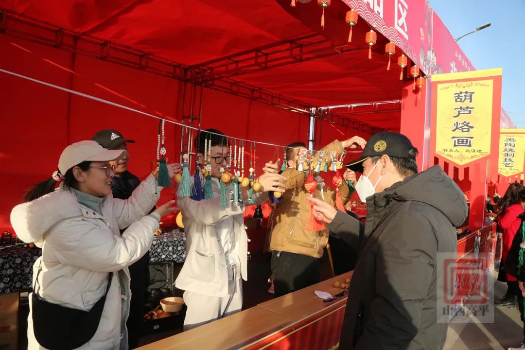在喜镇苏庄、炎帝灯会、良户古村、康养釜山等地,处处洋溢着张灯结彩的节日氛围,“高平有礼”特色产品展销会火爆开市。借助景区举办的新年庙会、灯光秀、民俗展演等丰富多彩的“两节”活动,让“高平有礼”特色产品集中亮相,吸引了不少游客纷纷前来品尝购买。