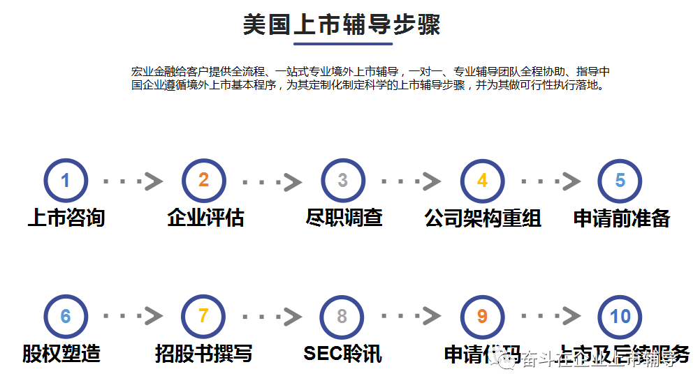 宏业金融集团作为赴美上市辅导的综合服务平台,可提供美股相关业务的全产业链服务,包括: