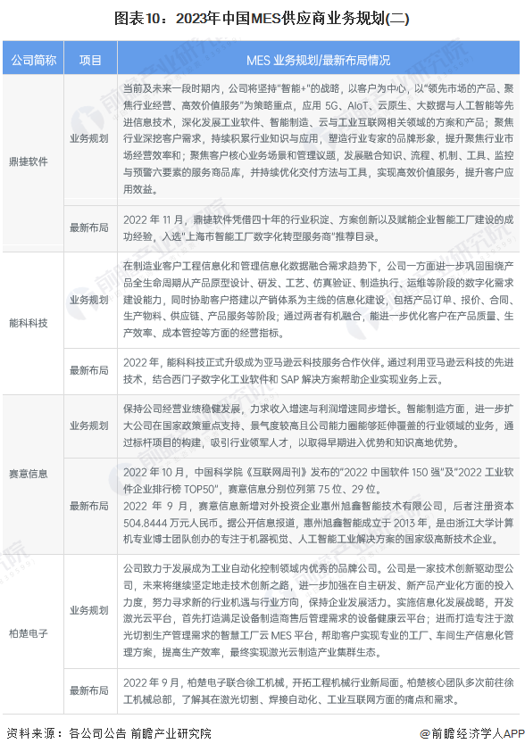 中国MES供应商对于未来业务的规划,主要可以从几个层面分析,在业务转型层面,部分企业与产业生态圈伙伴合作,转变服务模式,如能科科技与亚马逊云团队合作,帮助制造企业业务上云;在业务拓展方面,目前多数企业仍侧重深耕国内市场,战略性拓展海外业务;在业务能力深化方面,部分企业意识到在项目早期、售后阶段延长服务链条,形成服务闭环是未来公司赢利点之一。