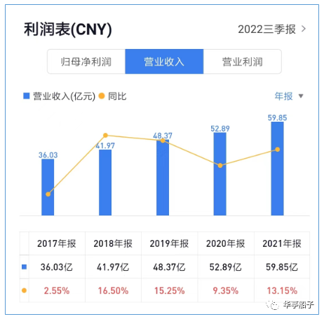2017年至2021年,公司的营业收入实现稳步增长,从36. 03亿元增长至59. 85亿元。