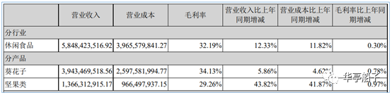 分产品来看,公司的主营业务分为葵花子、坚果类两个类别。