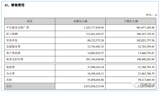 可以看到,依赖电商的三只松鼠,2021年支出平台服务及推广费13. 26亿元,占销售费用的64%.