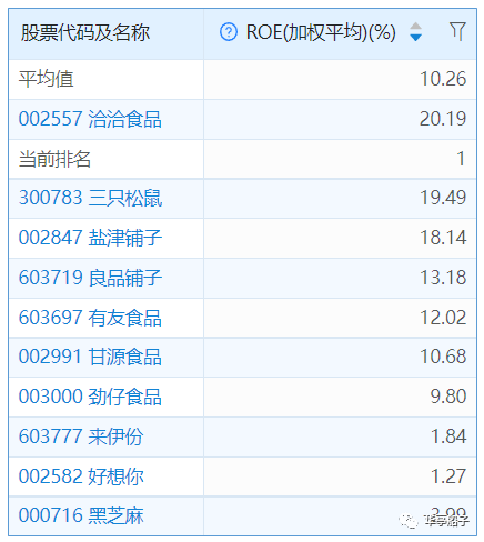 同行业对比一下,洽洽食品的ROE位居行业第一,高于三只松鼠、盐津铺子等一众竞争对手。