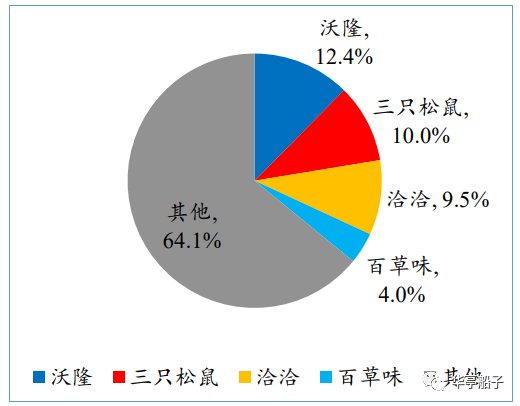 具体到公司主营的坚果炒货行业,根据中国食品工业协会的数据,2020年我国坚果炒货行业的市场规模为1800亿元,但行业的市场集中度较低,7家品牌上市公司的市占率合计仅为18. 4%,未来仍有较大的提升空间。